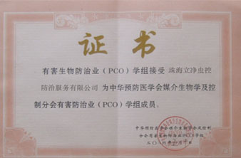 中國、珠海有害生物防治協(xié)會(huì)A級資質(zhì)認(rèn)證